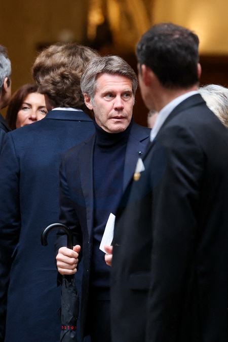 CM - Sorties des obsèques de l'ancien ministre de la Culture Frédéric Mitterrand en l'Église Saint-Thomas d'Aquin à Paris