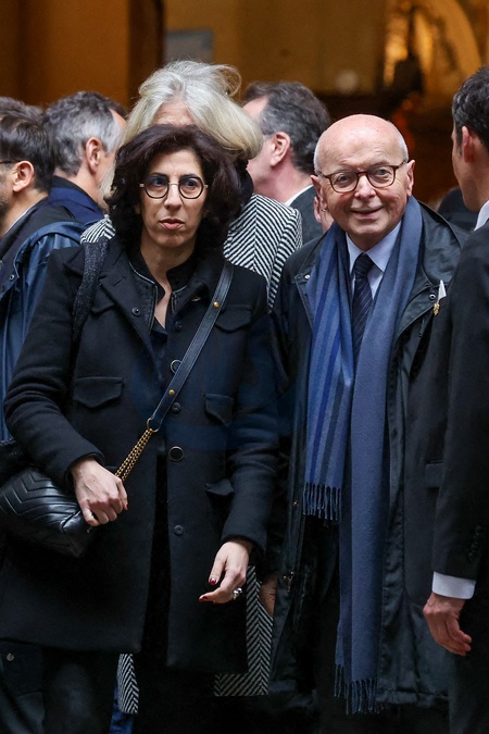 Rima Abdul Malak, Jacques Toubon - Sorties des obsèques de l'ancien ministre de la Culture Frédéric Mitterrand en l'Église Saint-Thomas d'Aquin à Paris. Le 26 mars 2024 © Moreau-Jacovides / Bestimage People seen leaving the funerals of the former Minister of Culture Frédéric Mitterrand in Paris. On March 26th 2024