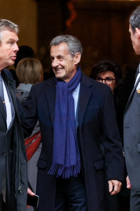 Nicolas Sarkozy - Sorties des obsèques de l'ancien ministre de la Culture Frédéric Mitterrand en l'Église Saint-Thomas d'Aquin à Paris. Le 26 mars 2024 © Moreau-Jacovides / Bestimage People seen leaving the funerals of the former Minister of Culture Frédéric Mitterrand in Paris. On March 26th 2024