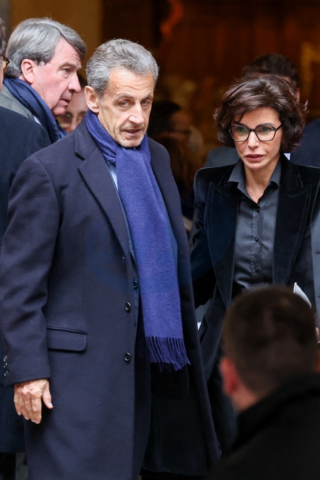 Nicolas Sarkozy et Rachida Dati - Sorties des obsèques de l'ancien ministre de la Culture Frédéric Mitterrand en l'Église Saint-Thomas d'Aquin à Paris. Le 26 mars 2024 © Moreau-Jacovides / Bestimage People seen leaving the funerals of the former Minister of Culture Frédéric Mitterrand in Paris. On March 26th 2024