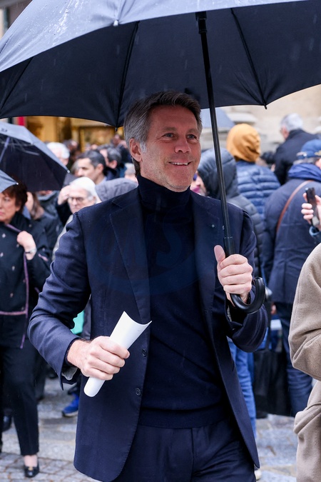 Le prince Emmanuel Philibert de Savoie - Sorties des obsèques de l'ancien ministre de la Culture Frédéric Mitterrand en l'Église Saint-Thomas d'Aquin à Paris. Le 26 mars 2024 © Moreau-Jacovides / Bestimage People seen leaving the funerals of the former Minister of Culture Frédéric Mitterrand in Paris. On March 26th 2024