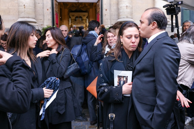 Wyjście z pogrzebu byłego Ministra Kultury Frédérica Mitterranda w kościele Saint-Thomas d'Aquin w Paryżu