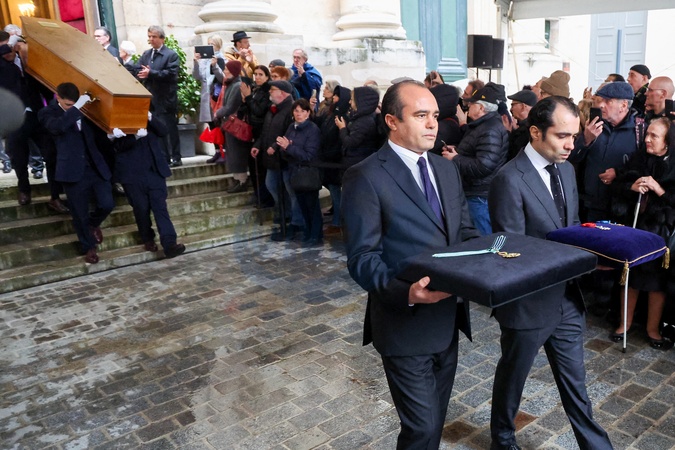 Wyjście z pogrzebu byłego Ministra Kultury Frédérica Mitterranda w kościele Saint-Thomas d'Aquin w Paryżu