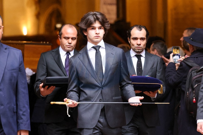 Wyjście z pogrzebu byłego Ministra Kultury Frédérica Mitterranda w kościele Saint-Thomas d'Aquin w Paryżu