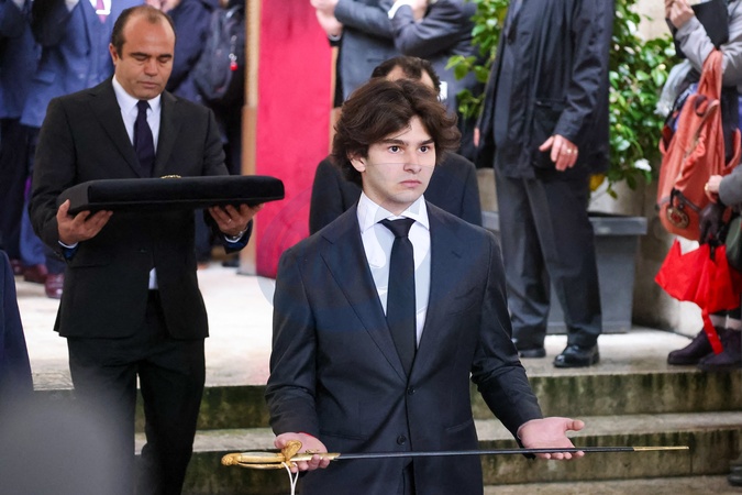 Saïd Kasmi-Mitterrand (Fils du défunt) - Sorties des obsèques de l'ancien ministre de la Culture Frédéric Mitterrand en l'Église Saint-Thomas d'Aquin à Paris. Le 26 mars 2024 © Jacovides-Moreau / Bestimage People seen leaving the funerals of the former Minister of Culture Frédéric Mitterrand in Paris. On March 26th 2024