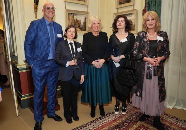 London, UK, 26 March 2024: (left-right) Harlan Coben, Donna Tartt, Queen Camilla, Helena Bonham Carter and Dame Joanna Lumley during a reception to mark the findings of a new research study commissioned by The Queen's Reading Room charity, at Clarence House in London., Credit:Yui Mok / Avalon