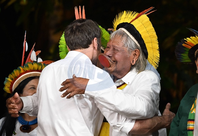 Le président Emmanuel Macron et le président du Brésil Lula (Luiz Inácio Lula da Silva) vont saluer le chef Raoni sur l'île Combu au Brésil
