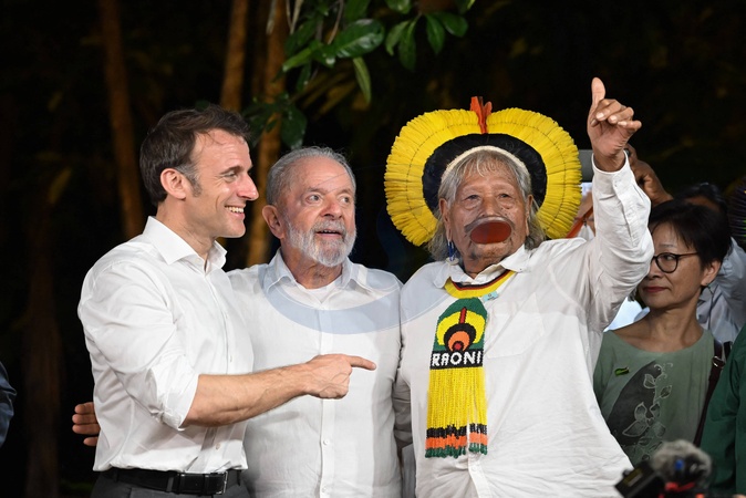 Le président Emmanuel Macron et le président du Brésil Lula (Luiz Inácio Lula da Silva) vont saluer le chef Raoni sur l'île Combu au Brésil