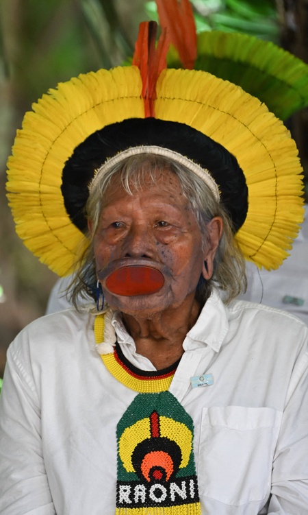 Le président Emmanuel Macron et le président du Brésil Lula (Luiz Inácio Lula da Silva) vont saluer le chef Raoni sur l'île Combu au Brésil
