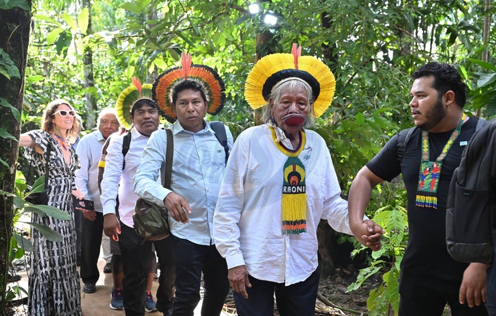 Le président Emmanuel Macron et le président du Brésil Lula (Luiz Inácio Lula da Silva) vont saluer le chef Raoni sur l'île Combu au Brésil