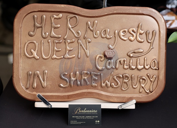 SHREWSBURY, ENGLAND - MARCH 27: A chocolate welcoming Queen Camilla ahead of her visit to the Farmers' Market on March 27, 2024 in Shrewsbury, England., Credit:Chris Jackson / Avalon