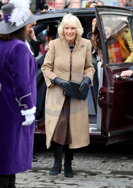 SHREWSBURY, ENGLAND - MARCH 27: Queen Camilla smiles as she arrives for her visit to the Farmers' Market on March 27, 2024 in Shrewsbury, England., Credit:Chris Jackson / Avalon