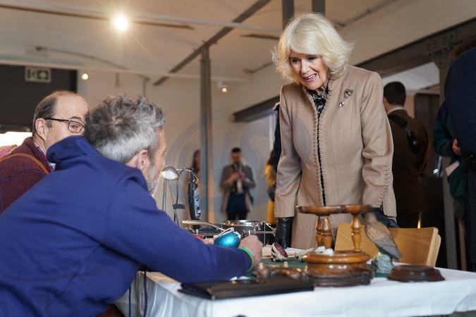 Shrewsbury, Shropshire, UK, 27 March 2024: Queen Camilla meeting members of local volunteer groups during a visit to the recently restored Shrewsbury Flaxmill Maltings in Shropshire., Credit:Jacob King / Avalon