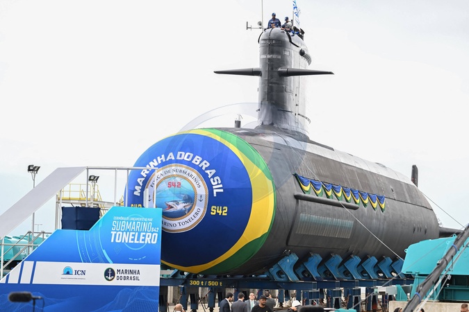 Pierwsza Dama Brazylii, Rosangela da Silva Prezydent Francji i prezydent Brazylii przybywają do bazy łodzi podwodnych Itaguai w celu zwodowania łodzi podwodnej Tonelero