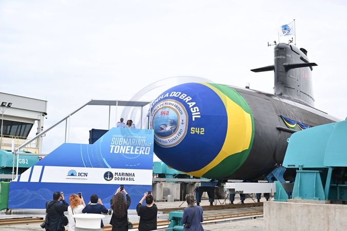 Pierwsza Dama Brazylii, Rosangela da Silva Prezydent Francji i prezydent Brazylii przybywają do bazy łodzi podwodnych Itaguai w celu zwodowania łodzi podwodnej Tonelero