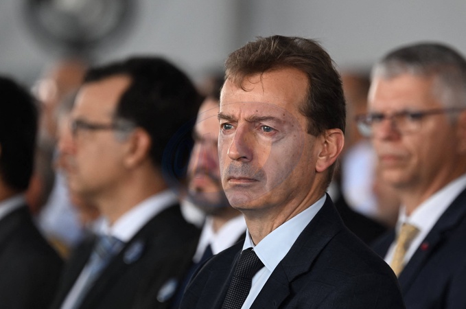 Guillaume Faury,directeur général d'Airbus - Le président français et son homologue le président brésilien arrivent à la base sous-marin d'Itaguai pour le lancement du sous-marin Tonelero au Brésil, le 27 mars 2024. © Jacques Witt/Pool/Bestimage French President and President of Brazil arriving on he submarine base of Itaguai for the launch of the submarine Tonelero, in Brazil, on March 27, 2024.