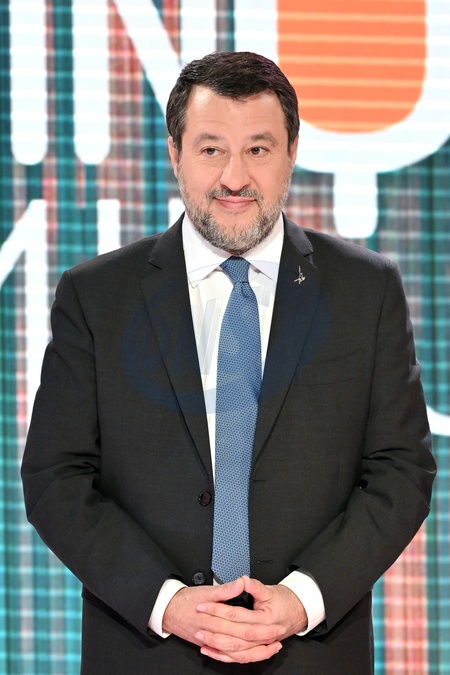 Matteo Salvini, Minister of Transport and Infrastructure and Deputy Prime Minister, during the tv program Cinque Minuti, Rome, March 27 2024, Credit:Maria Laura Antonelli / Avalon