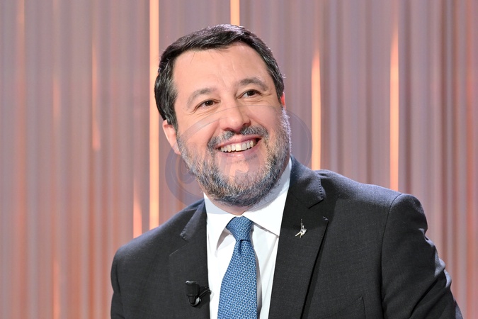 Matteo Salvini during the tv program Cinque Minuti, Rome, March 27 2024