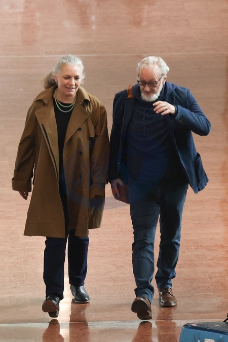 Exclusif - Robert Englund et sa femme Nancy Booth arrivent à l'aéroport de Paris-Charles de Gaulle, le 28 mars 2024. Exclusive - Germany call for price - Robert Englund and his wife Nancy Booth arrive at Paris-Charles de Gaulle airport, March 28, 2024.