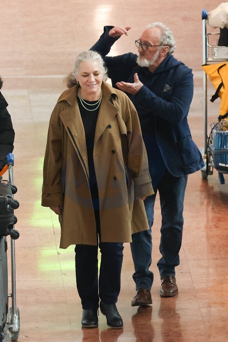 Exclusif - Robert Englund et sa femme Nancy Booth arrivent à l'aéroport de Paris-Charles de Gaulle, le 28 mars 2024. Exclusive - Germany call for price - Robert Englund and his wife Nancy Booth arrive at Paris-Charles de Gaulle airport, March 28, 2024.