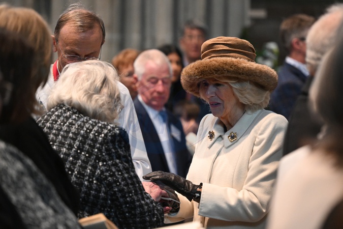 Britain's Queen Camilla hands out the Maundy Money during the Royal Maundy Service where she distributes the money to 75 men and 75 women, mirroring the age of the monarch, in Worcester Cathedral, western England on March 28, 2024, to thank them for their outstanding Christian service and for making a difference to the lives of people in their local communities. Maundy Thursday is the Christian holy day falling on the Thursday before Easter. The monarch commemorates Maundy by offering 'alms' to senior citizens. Each recipient receives two purses, one red and one white.NO UK USE FOR 48 HOURS, Credit:Avalon.red / Avalon