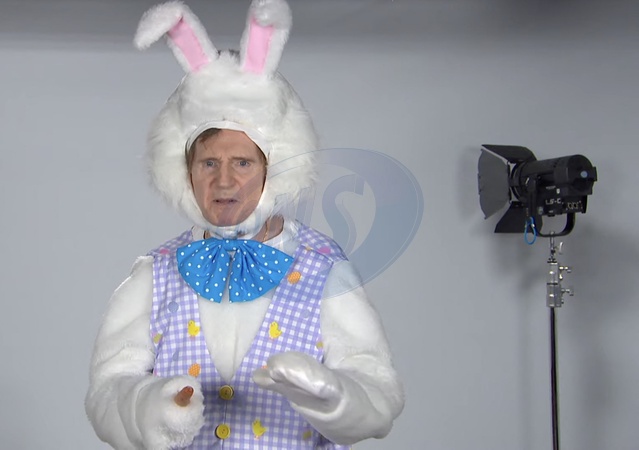 Pictures must credit: CBS Movie tough guy Liam Neeson auditions to play the Easter Bunny — as a menacing freak of nature who uses his carrot to bust people's ribs. The Irish-born Taken star played out the skit for the Stephen Colbert chat show in the US pitching for the role of the normally cuddly bunny. The 71-year-old actor is known in recent years for a string of violent revenge -themed films, movies such as retribution, Saints and Sinners and The Marksman. But he turns up in a bunny costume complete with big ears for the job he says he desperately needs because he's "running out of relatives to be taken.” Picture supplied by JLPPA