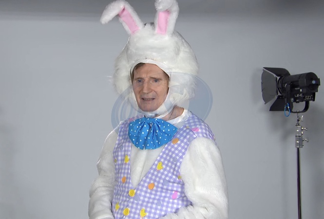 Pictures must credit: CBS Movie tough guy Liam Neeson auditions to play the Easter Bunny — as a menacing freak of nature who uses his carrot to bust people's ribs. The Irish-born Taken star played out the skit for the Stephen Colbert chat show in the US pitching for the role of the normally cuddly bunny. The 71-year-old actor is known in recent years for a string of violent revenge -themed films, movies such as retribution, Saints and Sinners and The Marksman. But he turns up in a bunny costume complete with big ears for the job he says he desperately needs because he's "running out of relatives to be taken.” Picture supplied by JLPPA