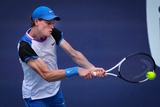 Jannik Sinner (ITA) lors de l'Open de tennis de Miami au Hard Rock Stadium à Miami, Floride, Etats-Unis, le 28 mars 2024. © Panoramic/Bestimage Miami Open at Hard Rock Stadium in Miami Gardens, Florida, United States, on March 28, 2024.