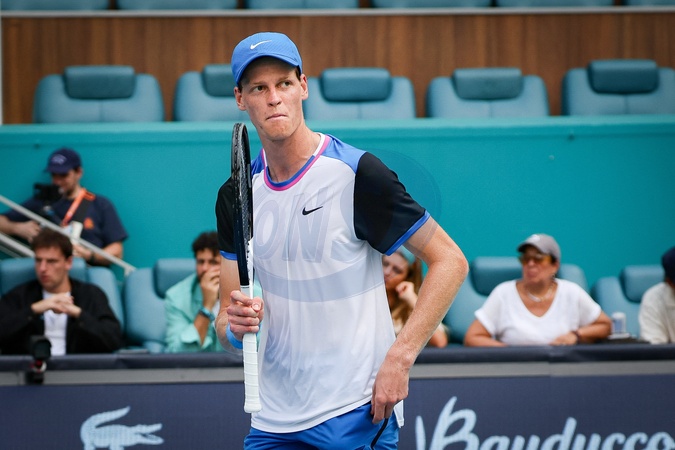 Jannik Sinner (ITA) lors de l'Open de tennis de Miami au Hard Rock Stadium à Miami, Floride, Etats-Unis, le 28 mars 2024. © Panoramic/Bestimage Miami Open at Hard Rock Stadium in Miami Gardens, Florida, United States, on March 28, 2024.