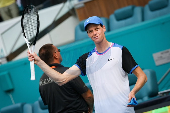 Jannik Sinner (ITA) lors de l'Open de tennis de Miami au Hard Rock Stadium à Miami, Floride, Etats-Unis, le 28 mars 2024. © Panoramic/Bestimage Miami Open at Hard Rock Stadium in Miami Gardens, Florida, United States, on March 28, 2024.