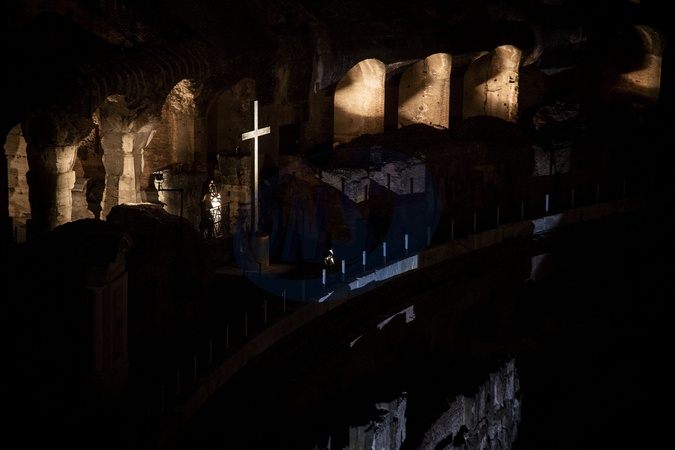 Pope Francis did not participate in the Good Friday procession to protect his health in view of his other commitments during Easter week. Via Crucis at the Colosseum in Rome during Holy Week of Easter on March 29, 2024 in Rome, Italy., Credit:Alessandro Serranv= / Avalon