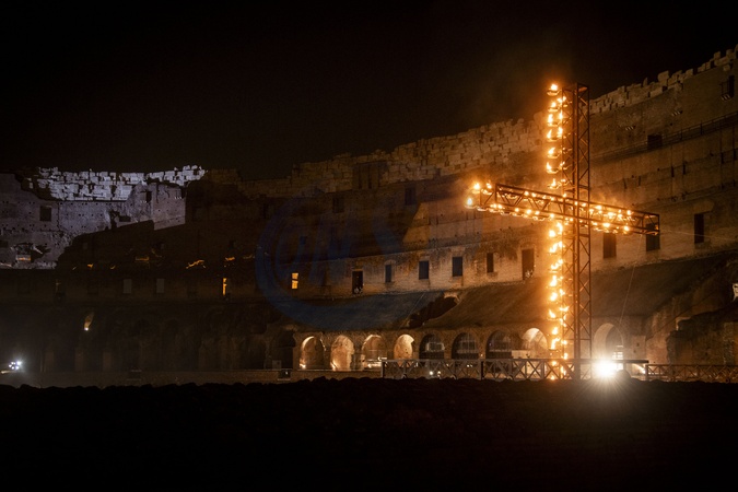 Pope Francis did not participate in the Good Friday procession to protect his health in view of his other commitments during Easter week. Via Crucis at the Colosseum in Rome during Holy Week of Easter on March 29, 2024 in Rome, Italy., Credit:Alessandro Serranv= / Avalon