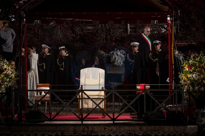 Pope Francis did not participate in the Good Friday procession to protect his health in view of his other commitments during Easter week. Via Crucis at the Colosseum in Rome during Holy Week of Easter on March 29, 2024 in Rome, Italy., Credit:Alessandro Serranv= / Avalon