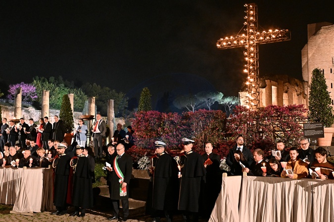 Pope Francis did not participate in the Good Friday procession to protect his health in view of his other commitments during Easter week. Via Crucis at the Colosseum in Rome during Holy Week of Easter on March 29, 2024 in Rome, Italy., Credit:Maria Laura Antonelli / Avalon