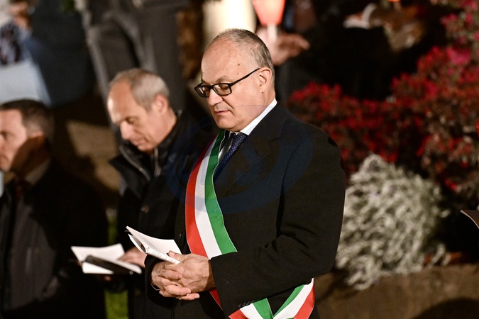 Pope Francis did not participate in the Good Friday procession to protect his health in view of his other commitments during Easter week. Via Crucis at the Colosseum in Rome during Holy Week of Easter. Roberto Gualtieri, mayor of Rome. March 29, 2024 in Rome, Italy., Credit:Maria Laura Antonelli / Avalon