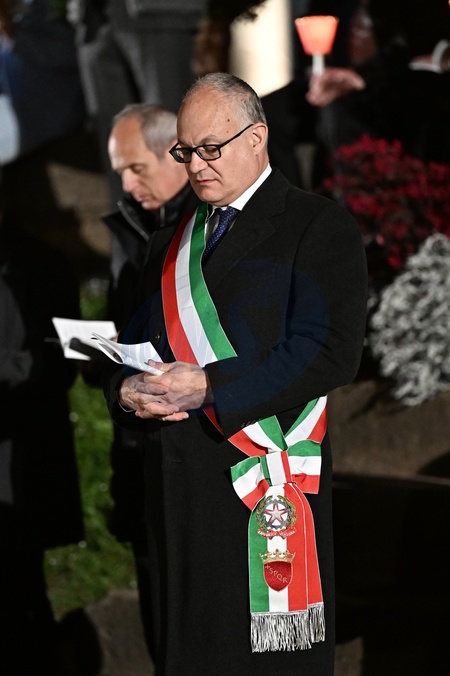 Pope Francis did not participate in the Good Friday procession to protect his health in view of his other commitments during Easter week. Via Crucis at the Colosseum in Rome during Holy Week of Easter. Roberto Gualtieri, mayor of Rome. March 29, 2024 in Rome, Italy., Credit:Maria Laura Antonelli / Avalon