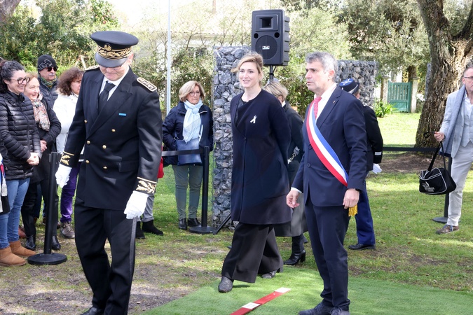 Ronan Leaustic sous-préfet d'Arcachon, Julie Gayet et Xavier Daney, Maire d'Arès.