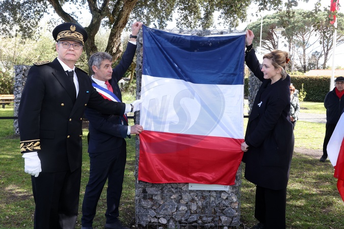 Ronan Leaustic sous-préfet d'Arcachon, Julie Gayet et Xavier Daney, Maire d'Arès.