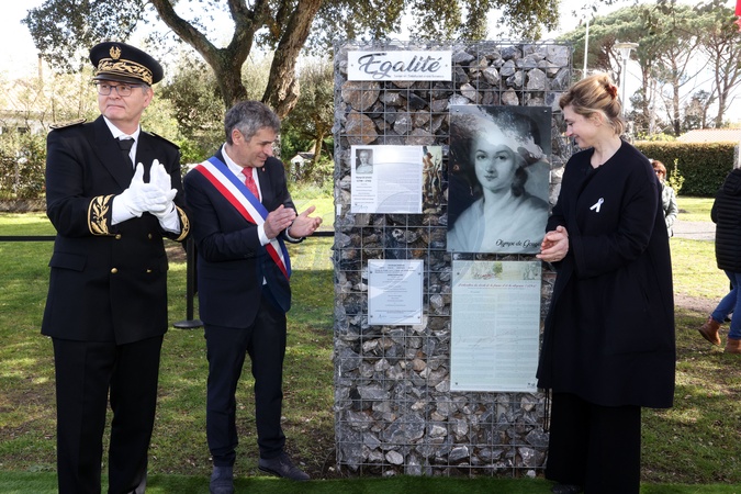 Julie Gayet lors du dévoilement du portrait de d'Olympe de Gouges au Square des Grands Principes Républicains à Arès