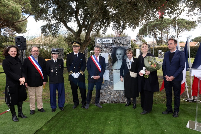 Julie Gayet lors du dévoilement du portrait de d'Olympe de Gouges au Square des Grands Principes Républicains à Arès