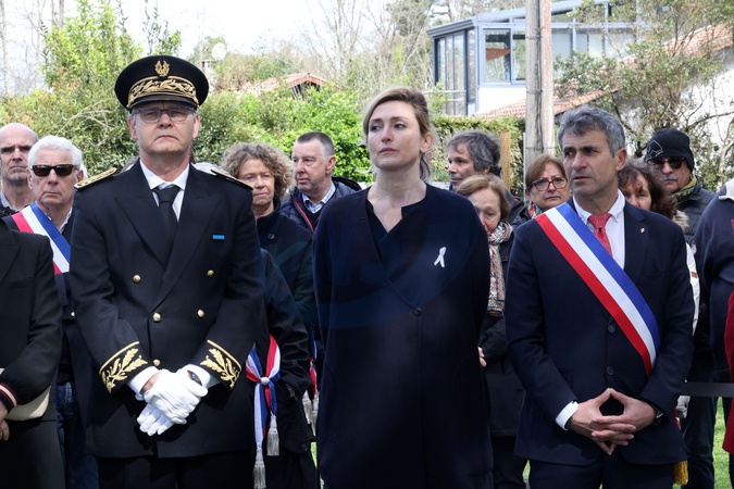 Ronan Leaustic sous-préfet d'Arcachon, Julie Gayet et Xavier Daney, Maire d'Arès.