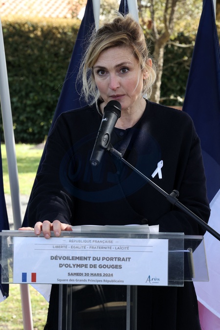 Semi-exclusif - Julie Gayet lors du dévoilement du portrait de d'Olympe de Gouges au Square des Grands Principes Républicains à Arès