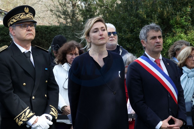 Julie Gayet lors du dévoilement du portrait de d'Olympe de Gouges au Square des Grands Principes Républicains à Arès