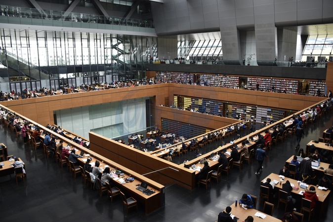 People read books in the National Library of China in Beijing, China Friday, Apr. 06, 2018., Credit:YAN XIANG / Avalon