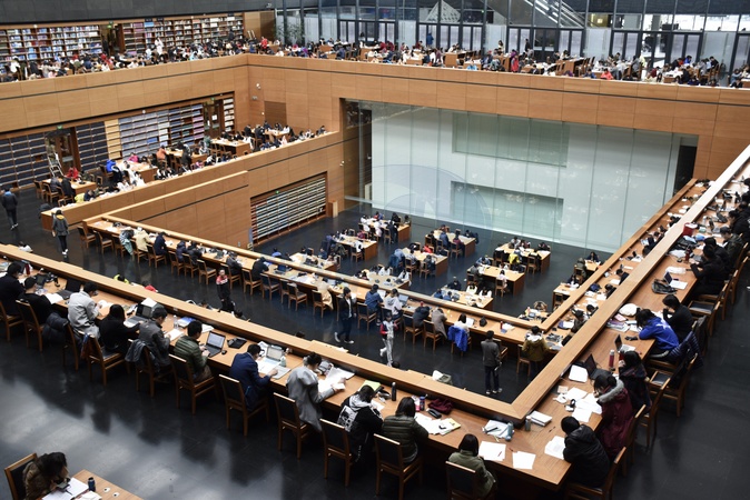 People read books in the National Library of China in Beijing, China Friday, Apr. 06, 2018., Credit:YAN XIANG / Avalon