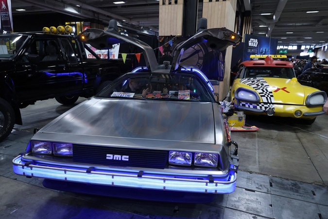 Exclusif - Illustration sur le Delorean de 'Back to the future' lors de la première saison du "Comic Con Paris" au salon de la Porte de Versailles de Paris, France, le 30 mars 2024. © Denis Guignebourg/BestImage