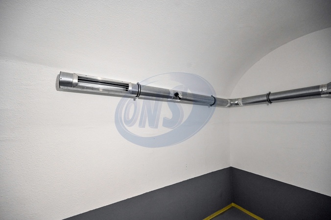 ZAPORIZHZHIA, UKRAINE - APRIL 1, 2024 - Pipes are attached to the walls in a new modular underground bomb shelter designed for 100 people that is being built in the yard of the five-storey residential building that was damaged by a Russian S-300 missile on October 6, 2022, and is now being restored, Zaporizhzhia, southeastern Ukraine., Credit:Dmytro Smolienko / Avalon