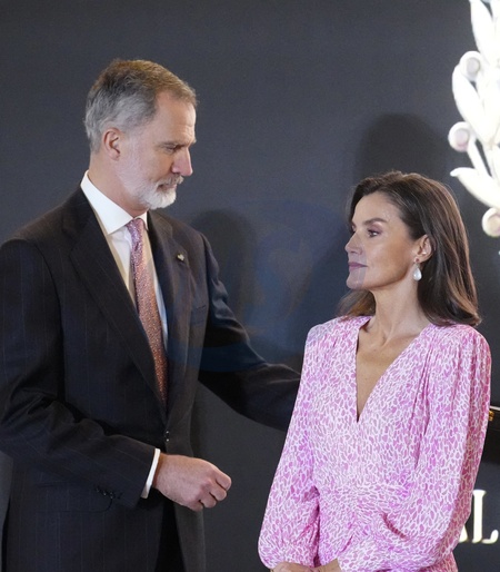 Król Felipe i królowa Hiszpanii Letizia wręczają nagrody podczas ceremonii wręczenia Złotych Medali Zasługi w dziedzinie Sztuk Pięknych 2022 w Pałacu Kongresów w Kadyksie
