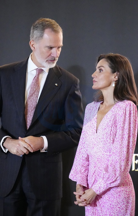 Król Felipe i królowa Hiszpanii Letizia wręczają nagrody podczas ceremonii wręczenia Złotych Medali Zasługi w dziedzinie Sztuk Pięknych 2022 w Pałacu Kongresów w Kadyksie