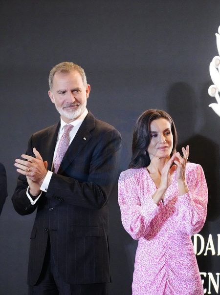 Król Felipe i królowa Hiszpanii Letizia wręczają nagrody podczas ceremonii wręczenia Złotych Medali Zasługi w dziedzinie Sztuk Pięknych 2022 w Pałacu Kongresów w Kadyksie